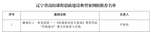 9月3日,沈阳工程学院公布拟推荐辽宁省高校课程思政建设典型案例名单,全校共2项案例入选。机械工程学院尹晓伟教授主持申报的课程思政案例成功获选。